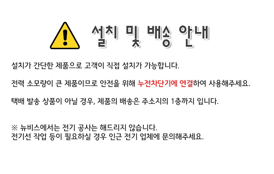 - 전문기사 설치가 필요한 제품은 설치 배송이 진행되며, 배송 전 반드시 주소지/진입조건 확인이 필요합니다.