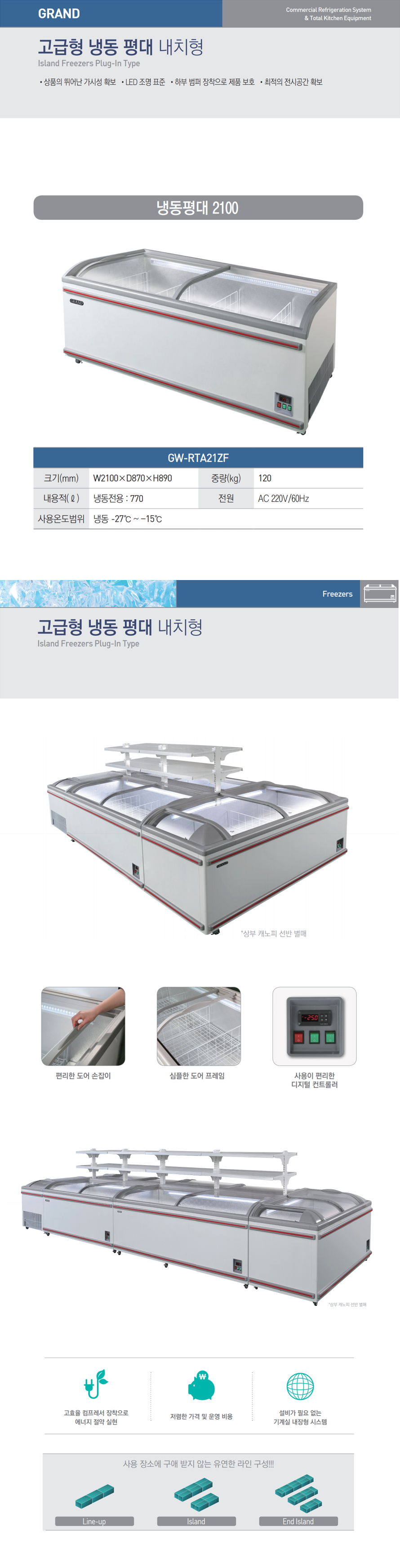 우성 GW-RTA21ZF 아이스크림 냉장고 쇼케이스 냉동 평대 2100x870x890 고급형