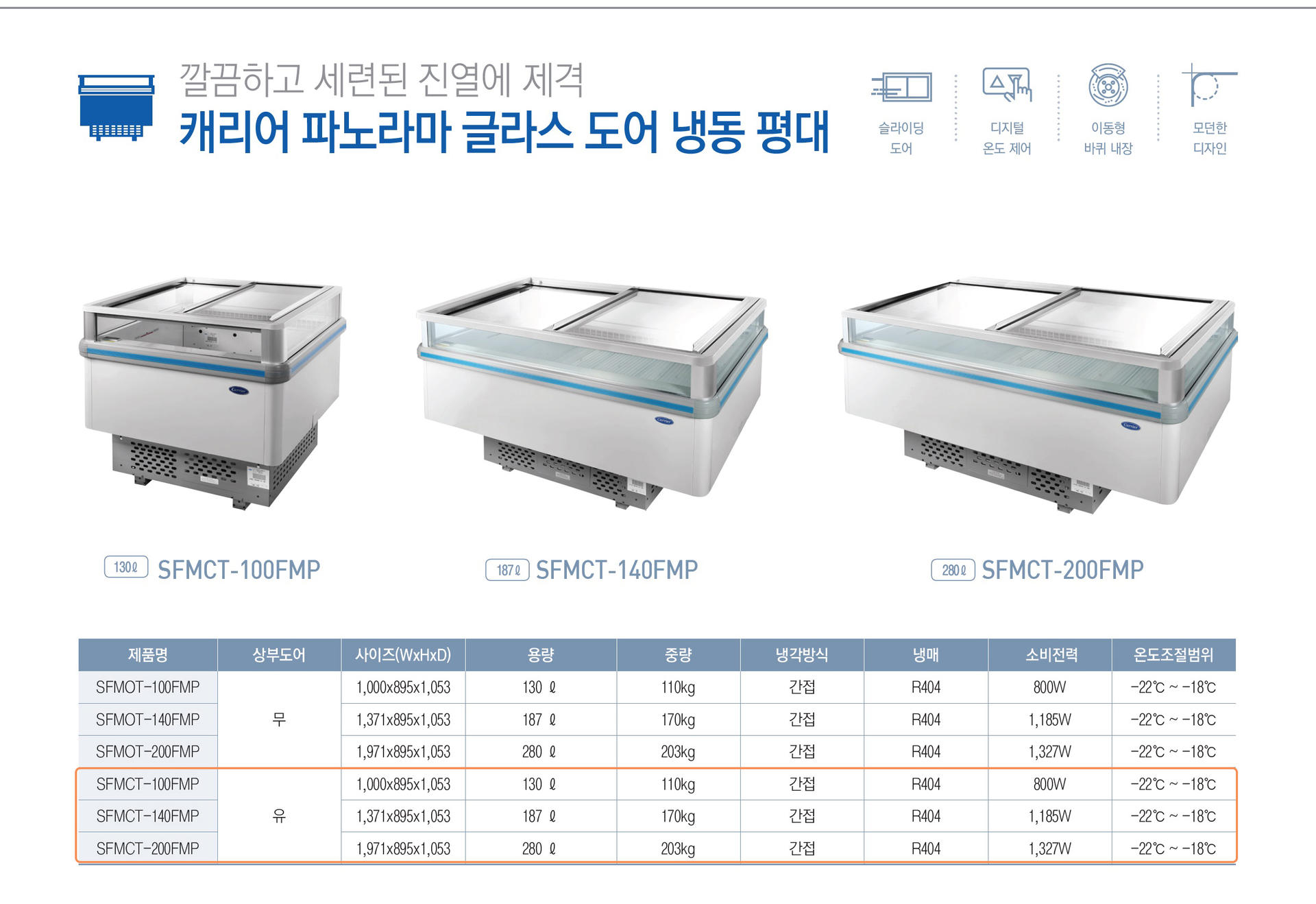 파노라마 냉동 평대 쇼케이스 정육 수산 SFMCT-100FMP 140FMP 200FMP