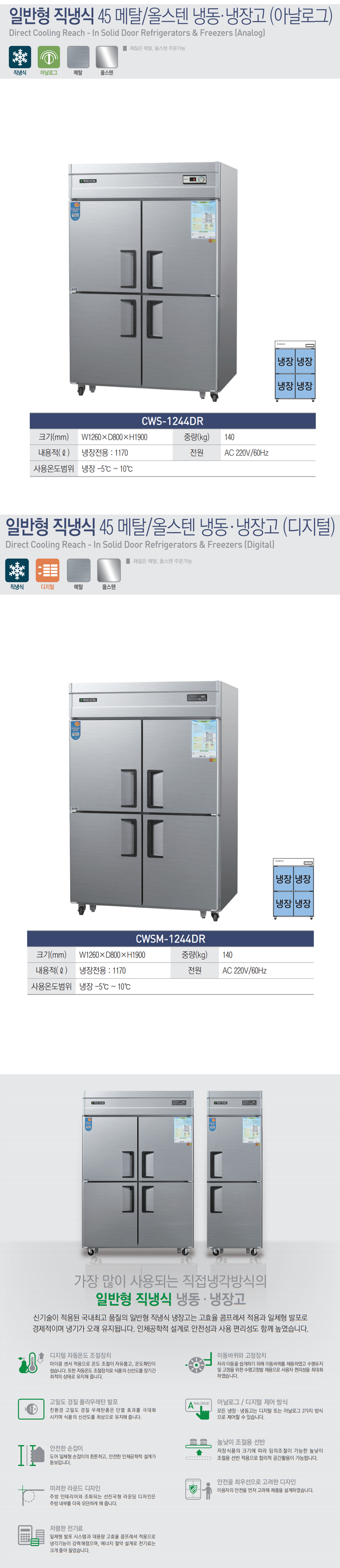 우성 45박스 냉장고 업소용 직냉식 올냉장 올스텐 CWS-1244DR CWSM-1244DR