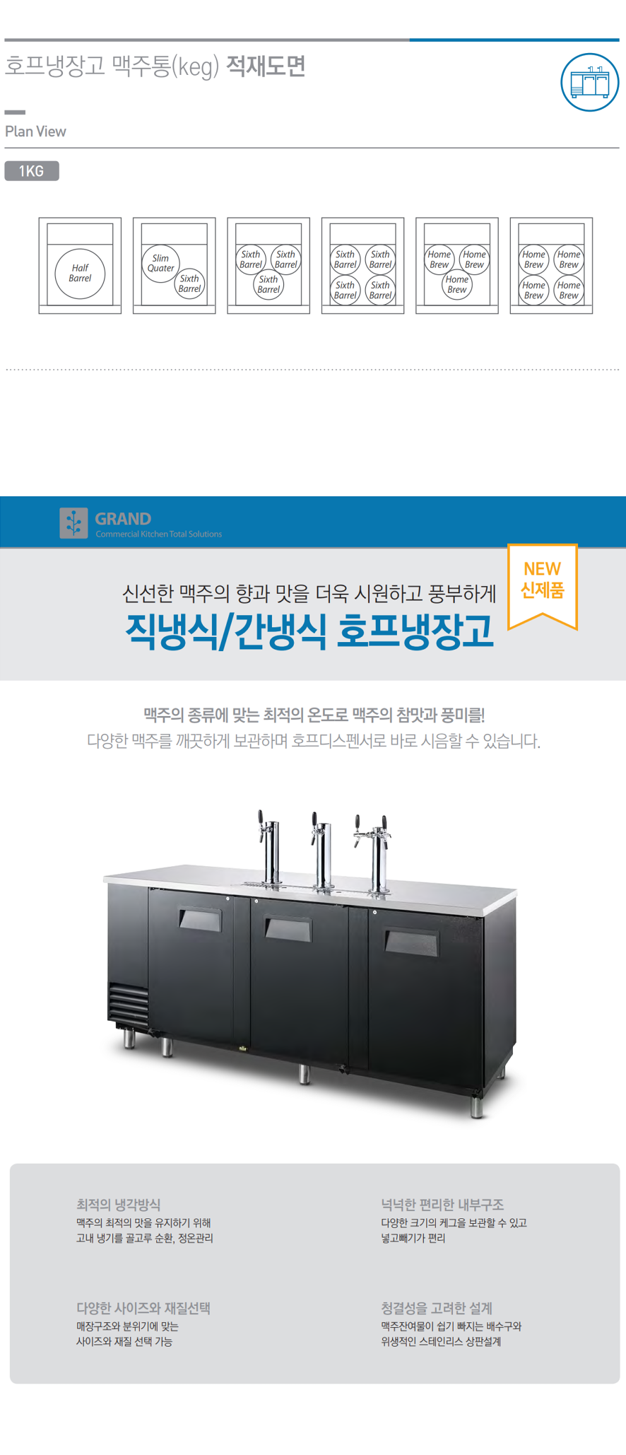 - 다양한 크기의 케그를 보관 할 수 있는 내부구조