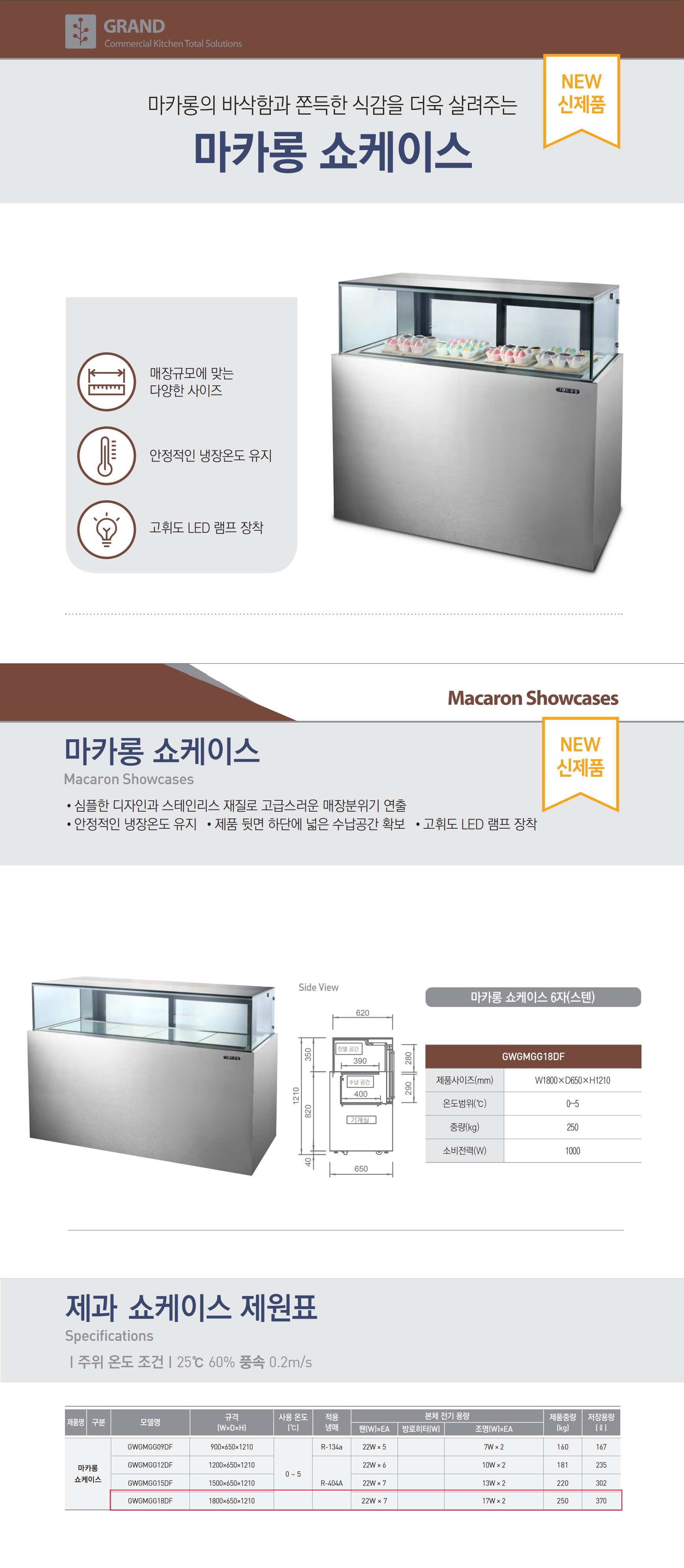 우성 마카롱 쇼케이스 사각 블랙, 화이트, 스텐 6자 GWGMGG18DF (1800*650*1210)
