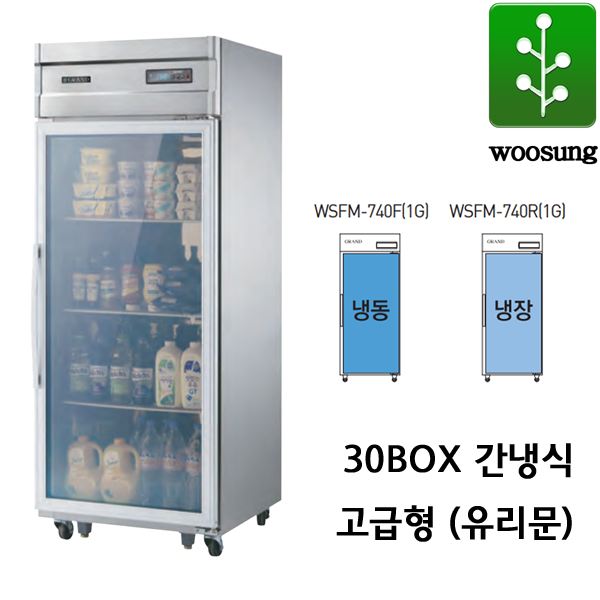 우성 고급형 간냉식 25박스 30박스 냉장고 올냉장 유리문 WSFM-740R(1G) WSFM-740F(1G)