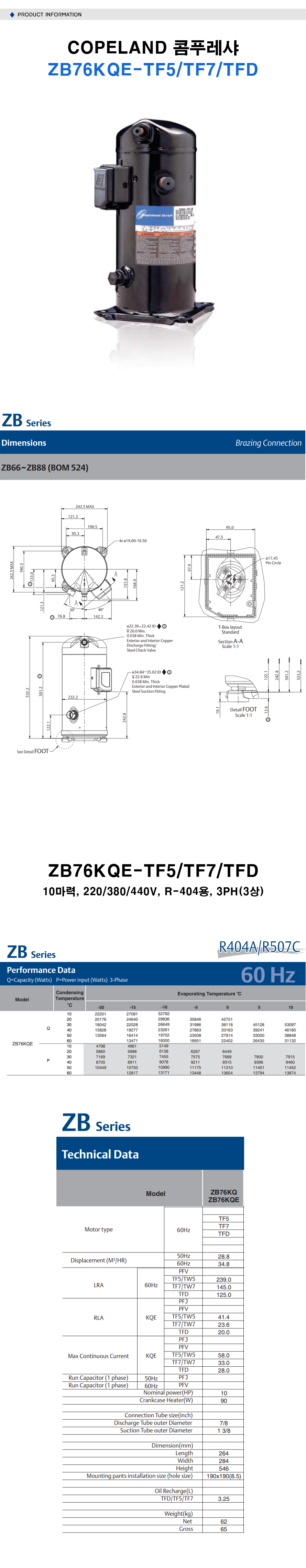 [COPELAND] 10마력 코플랜드 스크롤 콤프레셔 ZB76KQE-TF5 ZB76KQE-TF7 ZB76KQE-TFD