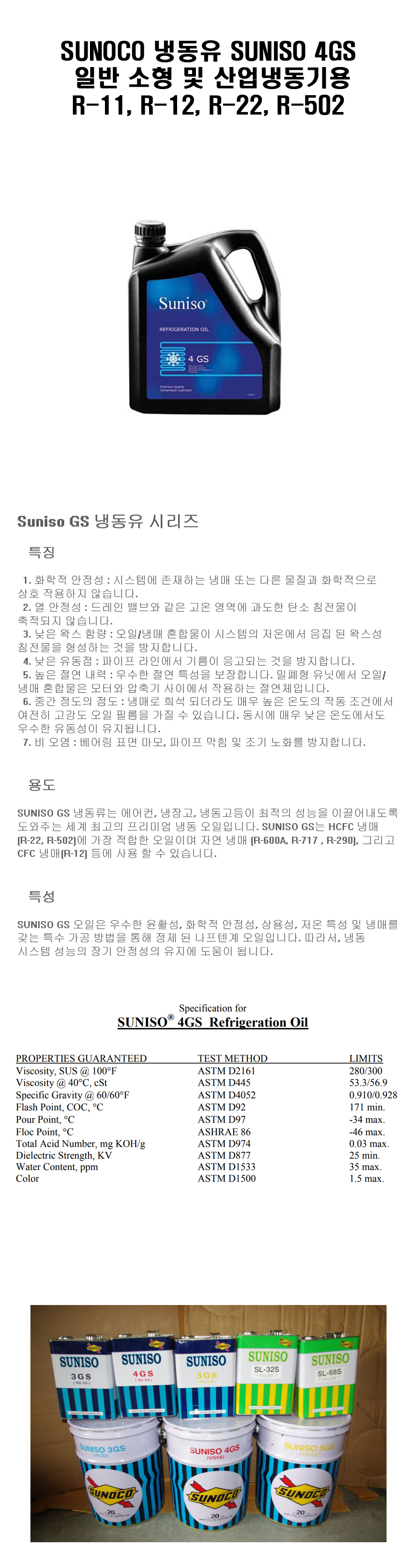 [SUNOCO]써니소 4GS/SUNISO 4GS OIL /냉동유/냉동오일/MO/4L 20L