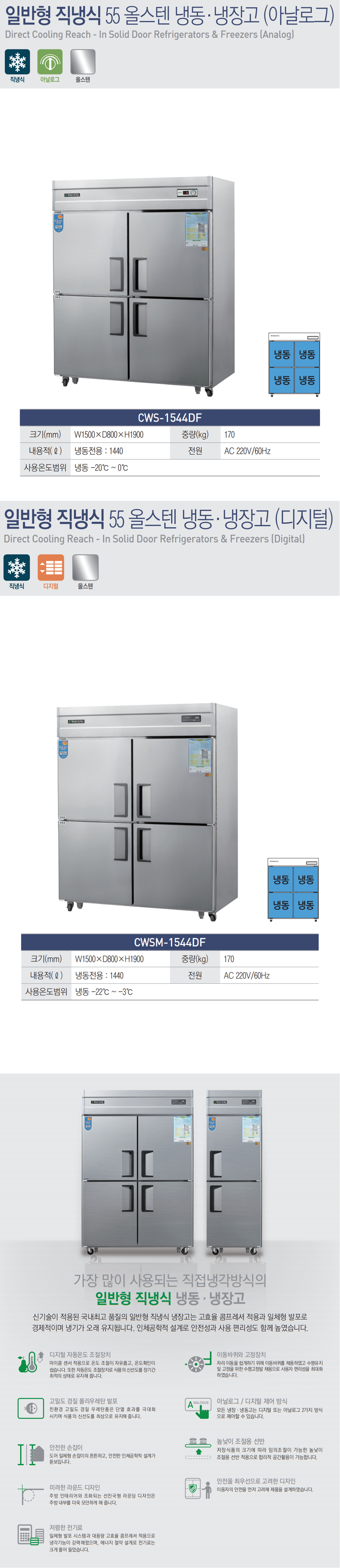[우성]55박스 업소용 냉장고 직냉식 올냉동 CWS-1544DF/CWSM-1544DF 올스텐