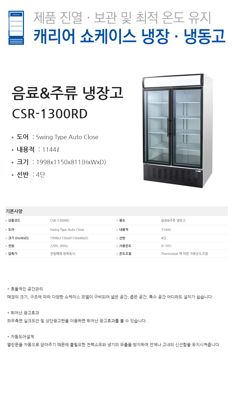 캐리어 CSR-1300RD 음료수 양문형 냉장고 쇼케이스 업소용
