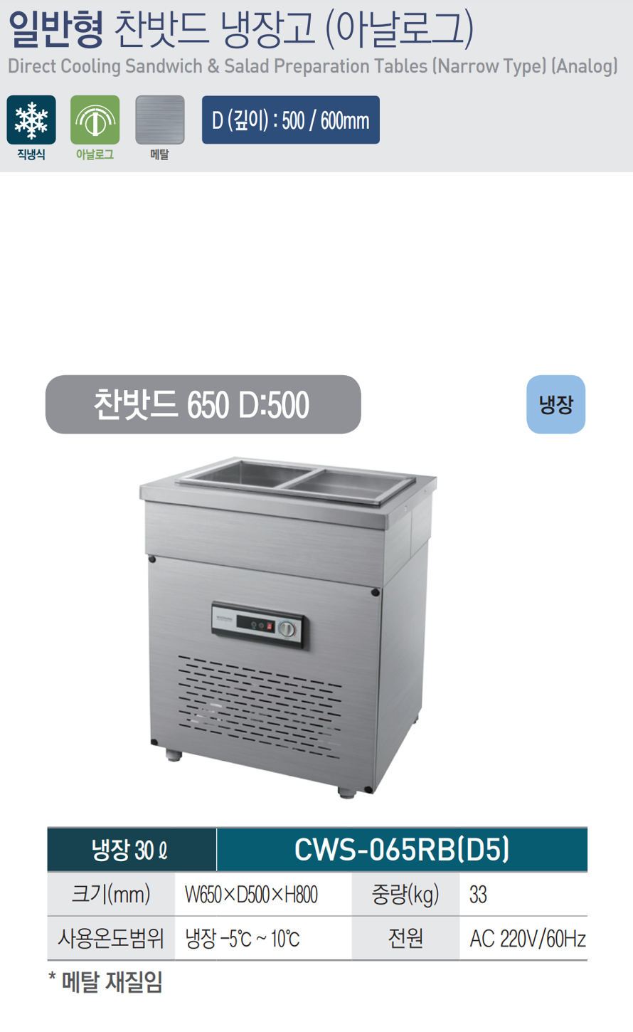 우성 일반형 찬밧드 반찬 냉장고 650*500 CWS-065RB(D5) CWSM-065RB(D5)