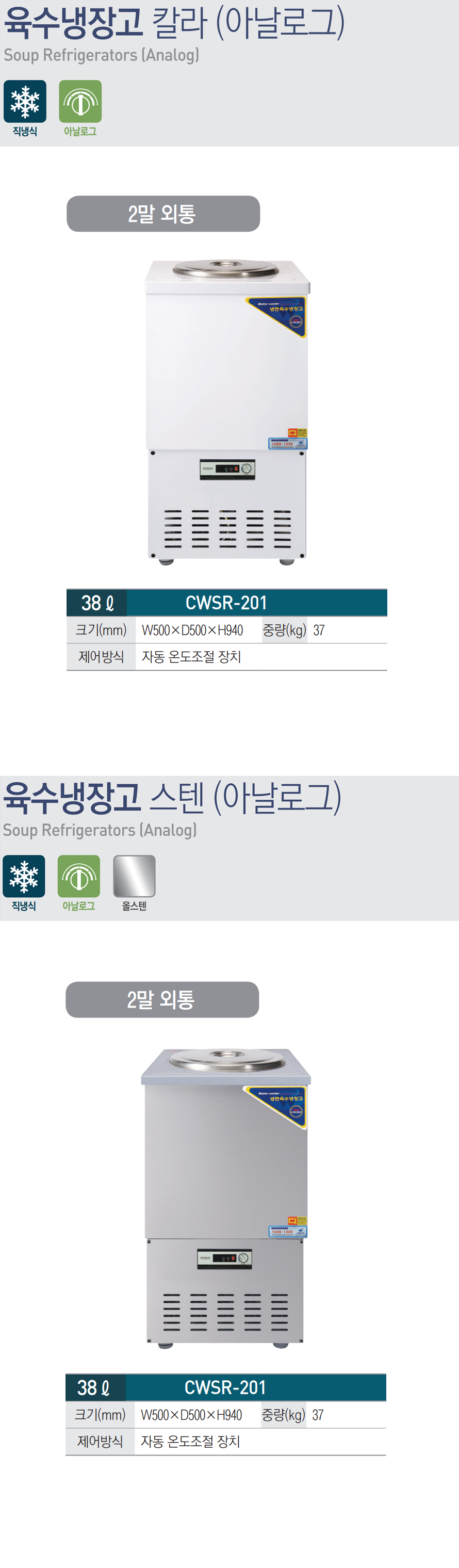 [우성] 업소용 육수냉장고 38L 외통형 CWSR-201 (500×500×940)SALE