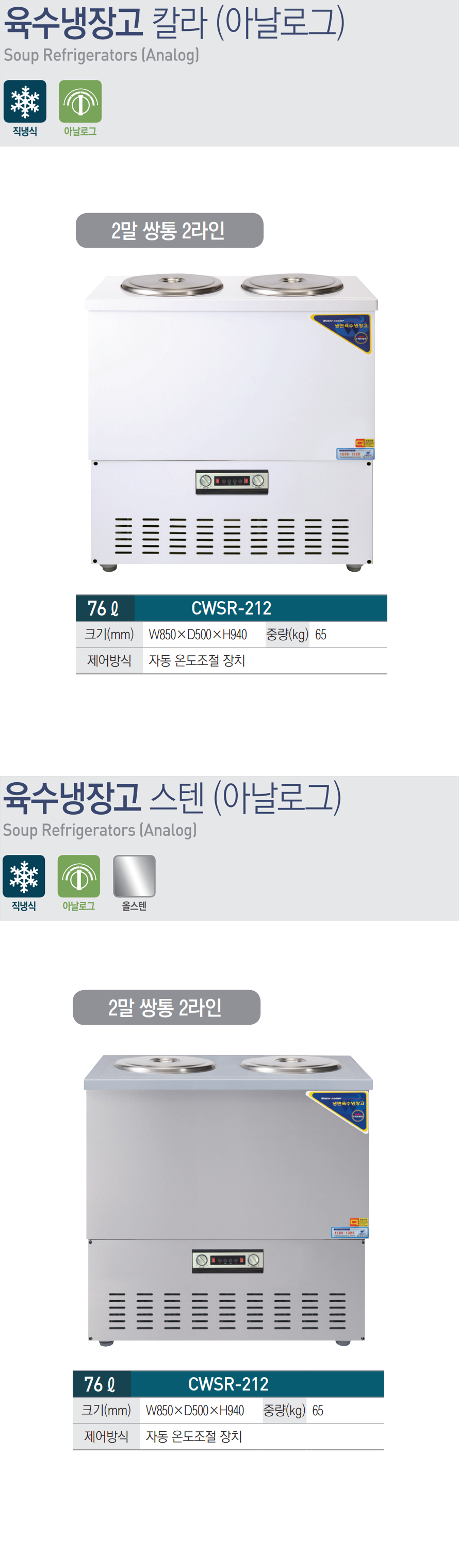 [우성] 업소용 육수냉장고 76L 쌍통형 CWSR-212 (850×500×940)