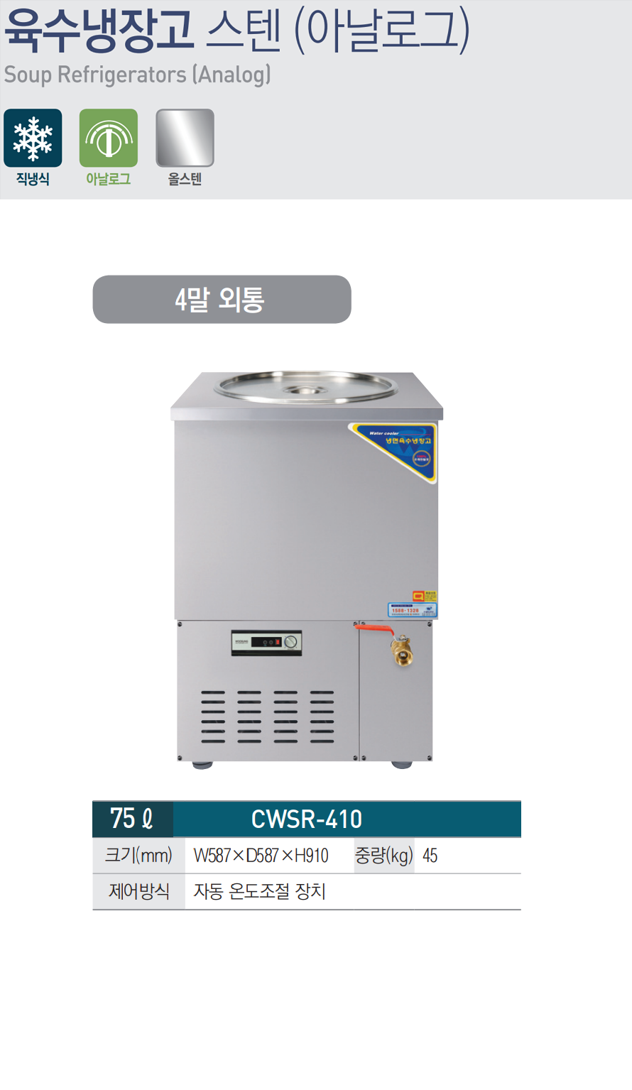 [우성] 업소용 육수냉장고 75L 외통형 CWSR-410 (587x587x910)