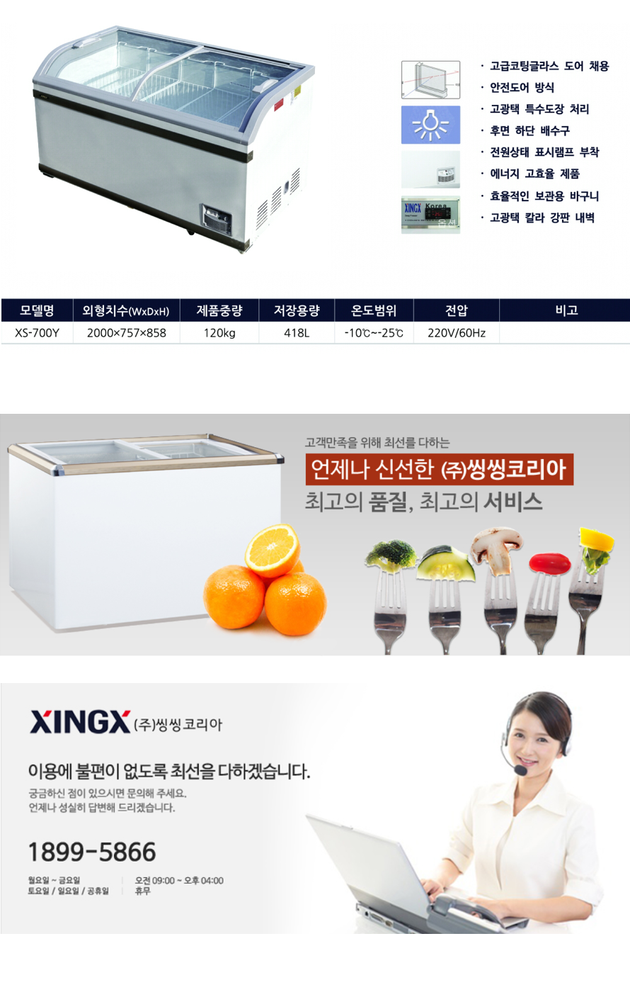 씽씽코리아 XS-700Y 아이스크림 냉장고 쇼케이스 라운드 곡면 업소용