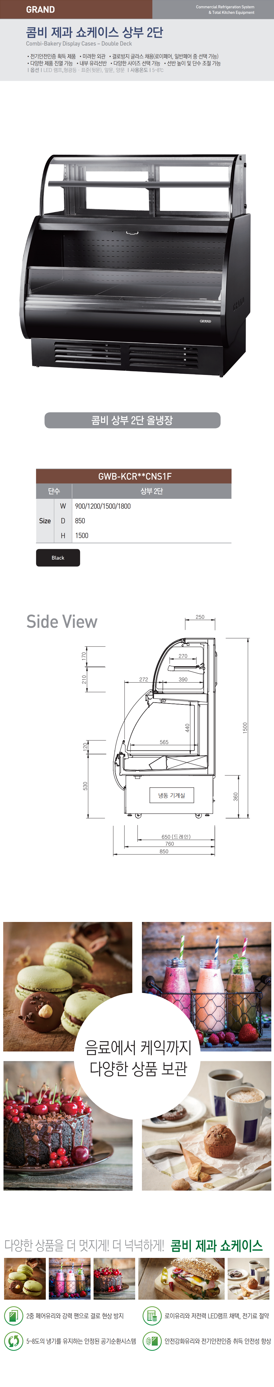 우성 콤비 제과 쇼케이스 상부 2단 3자 (900x850x1500) GWB-KCR09CNS1F