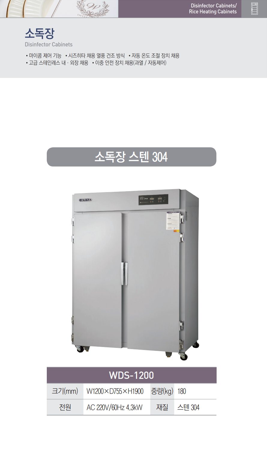 우성 WDS-1200 소독장 소독기 건조기 스텐304