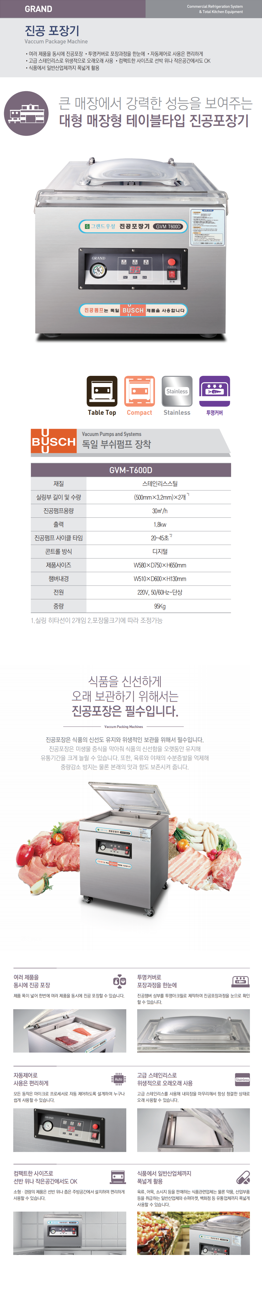 우성 GVM-T600D 진공포장기 독일 BUSCH 펌프 테이블타입 대형매장형 580x750x650