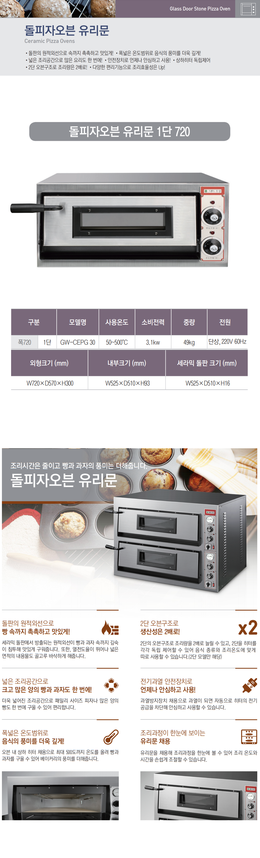 우성 GW-CEPG30 1단 전기오븐 피자 세라믹돌판 유리문