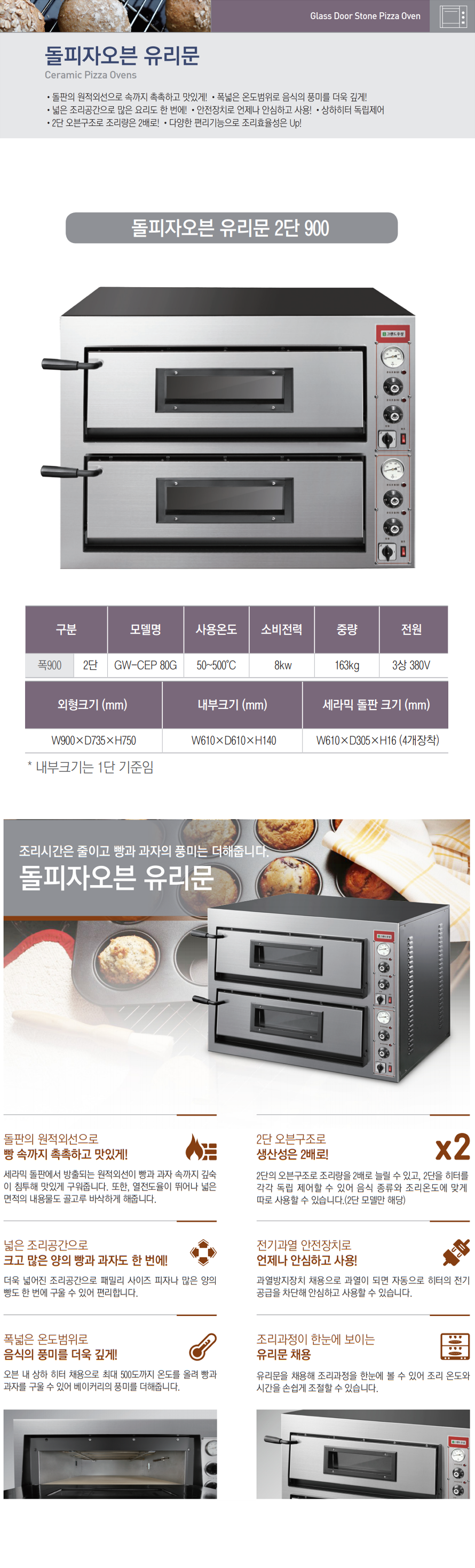 우성 GW-CEP80G 2단 전기오븐 피자 세라믹돌판 유리문